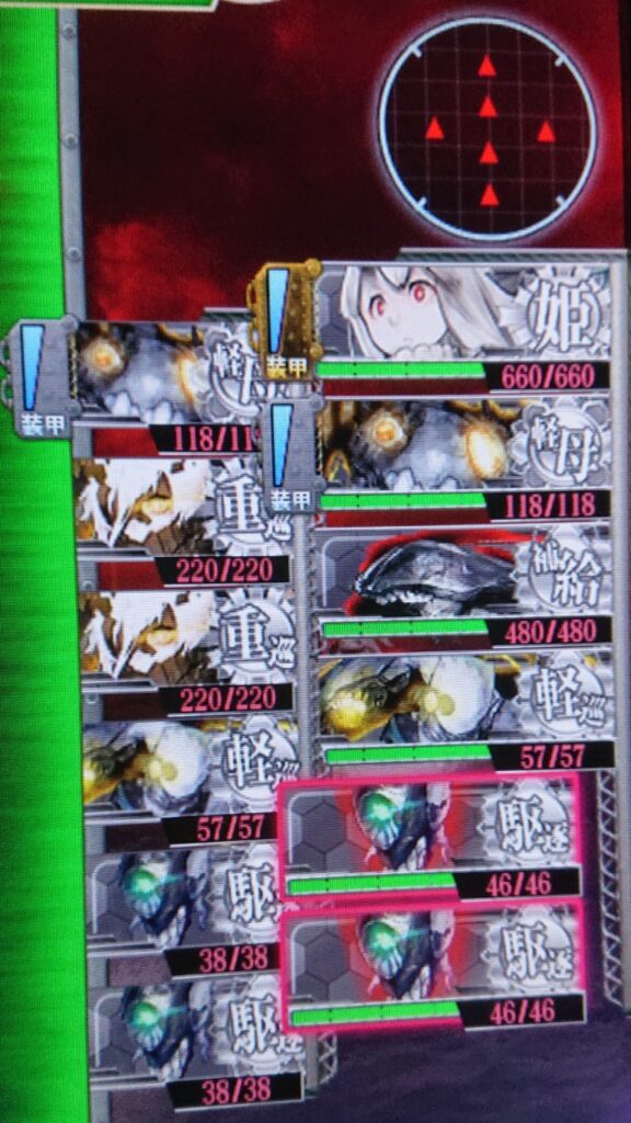 主力艦隊旗艦の撃沈が不要な輸送作戦のため面倒な護衛棲姫は放置推奨、随伴艦隊全滅かつ主力艦隊側4隻撃沈でのS勝利判定を狙いましょう