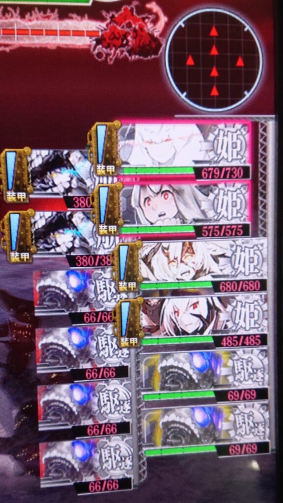 ・戦力ゲージは各種敵艦の撃沈で減少、また主力艦隊旗艦への与ダメor撃沈で大きく減少します