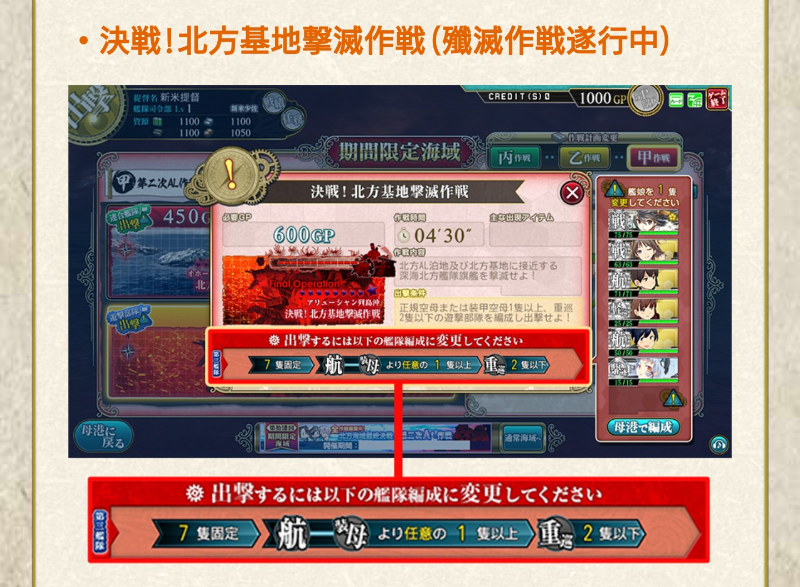 ・「北方海域最終決戦!第二次AL作戦」各種海域では航空攻撃のリロード時間が大幅に延長されます